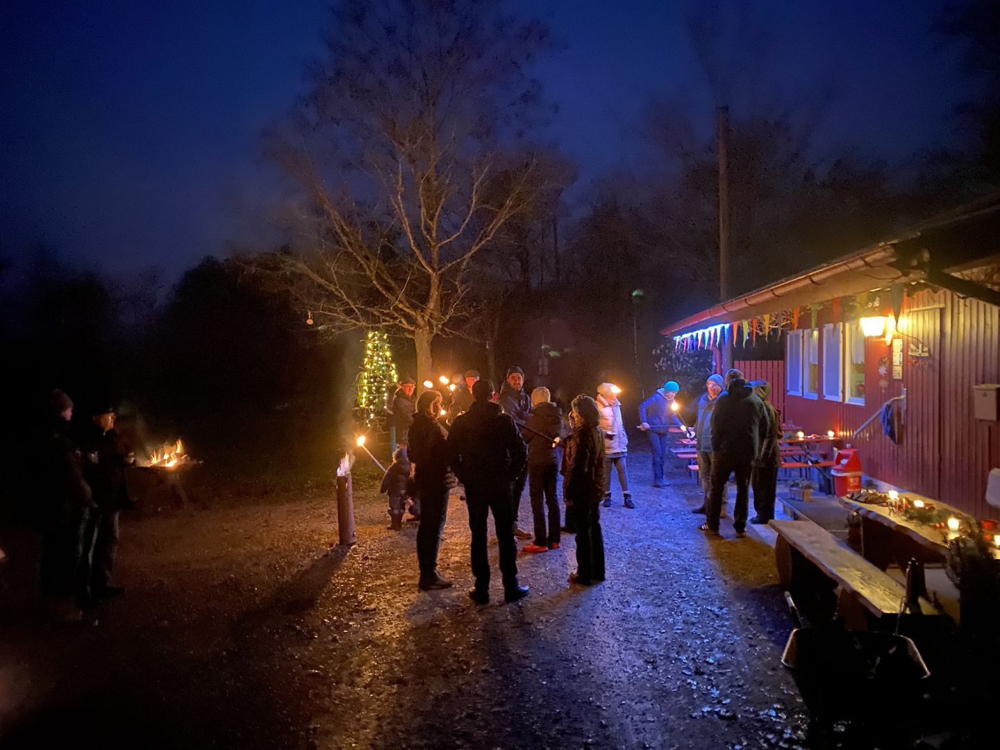 Gegen 17 Uhr trafen wir uns bei leichtem Schnee vor dem weihnachtlich geschmückten Clubheim. Nach einem heißen Getränk zur Begrüßung, machten wir eine Fackelwanderung durch den Wald. Im Anschluss gab es für die Jugend und alle anwesenden Kinder eine kleine Weihnachtsüberraschung.
