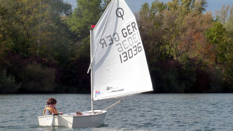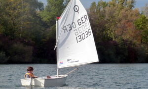 ist eine Einhandjolle, das heißt, er wird nur von einer Person gesegelt. Optis sind für Kindern im Alter von 8 bis zirka 13 Jahren geeignet.